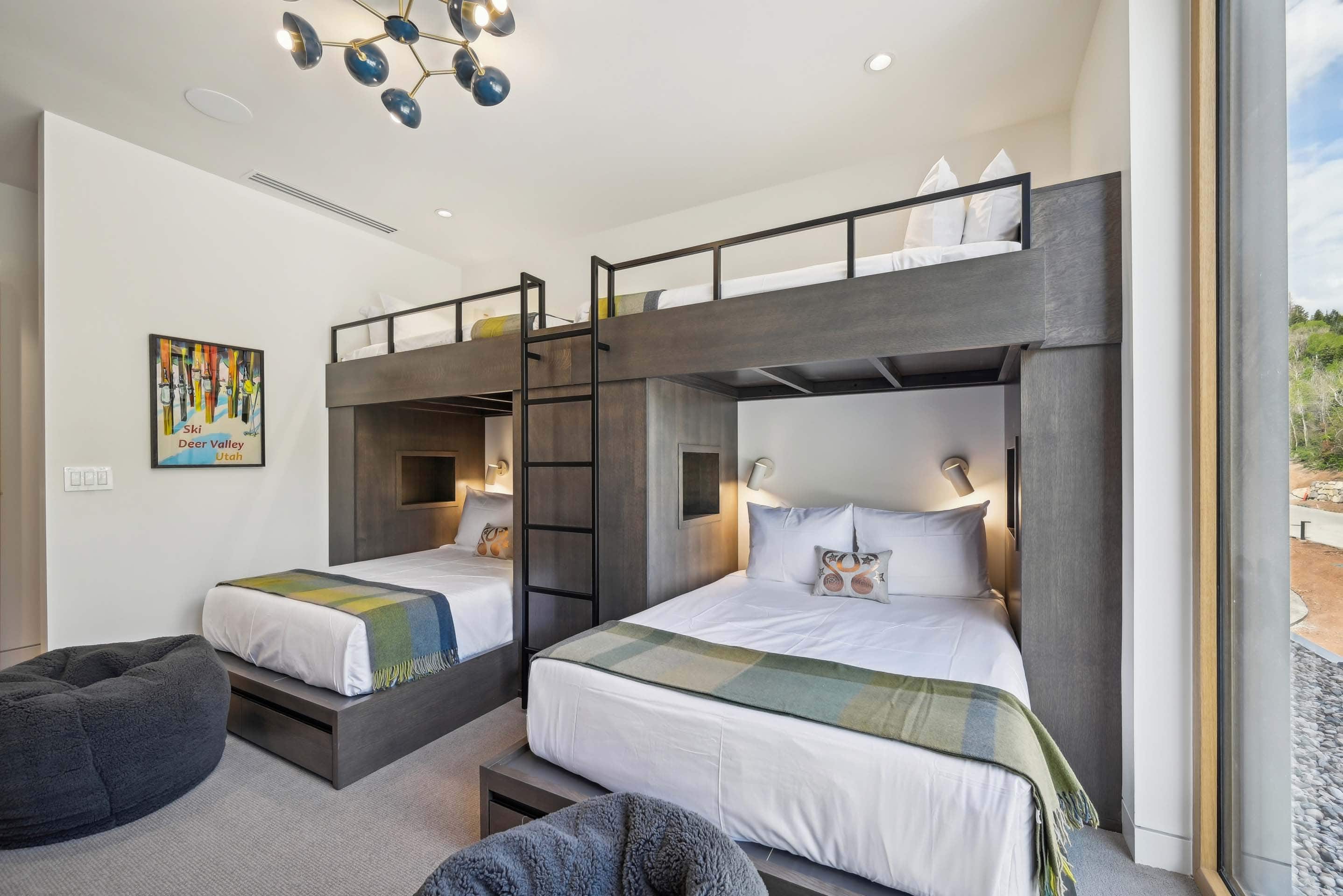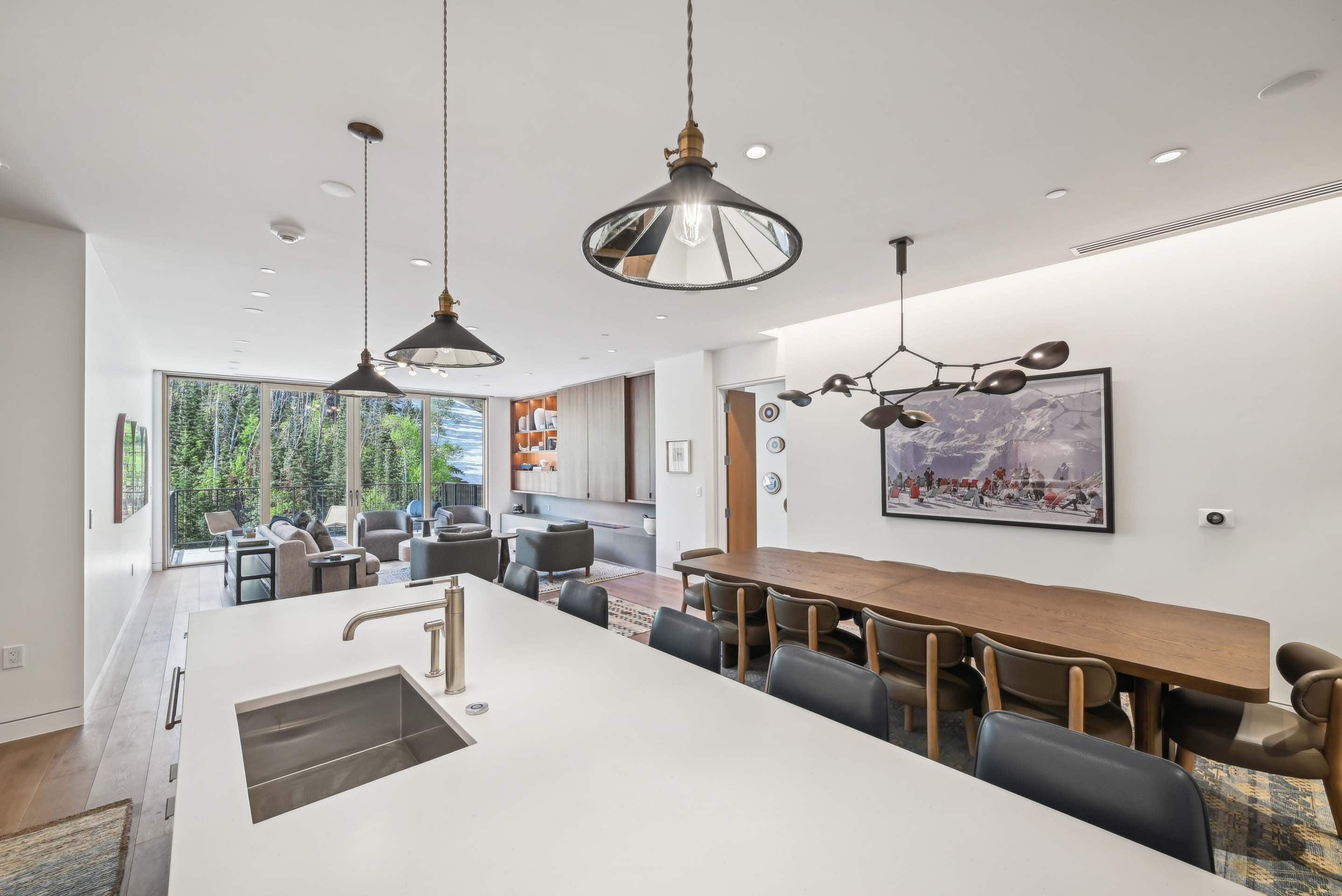 Step into the ultimate mountain retreat at Founders Place, Deer Valley’s premier ski-in, ski-out condominium complex thoughtfully designed to blend style, luxury, and convenience. This stunning three-bedroom, four-bath residence offers effortless comfort, highlighted by a spacious open-concept kitchen and living area ideal for relaxing or entertaining. Floor-to-ceiling windows fill the space with natural light and frame sweeping mountain views, while the fully equipped wood-accented kitchen—complete with a wine cooler, wet bar, dining area for ten, and a bar with seating for five—makes hosting a true delight. The serene primary suite features a king bed and spa-like ensuite, while the second suite also offers a king-size bed and ensuite bathroom with a shower/tub combo. The versatile third bedroom includes two twin-over-queen bunks and an ensuite bathroom with a spacious walk-in shower. Thoughtful amenities—including underground parking, air conditioning, a washer/dryer, sleeper sofa, a spacious den with a large sectional and flat-screen TV, and a generous porch with additional seating—create the perfect harmony of indulgence and convenience in one of Deer Valley’s most exclusive addresses.